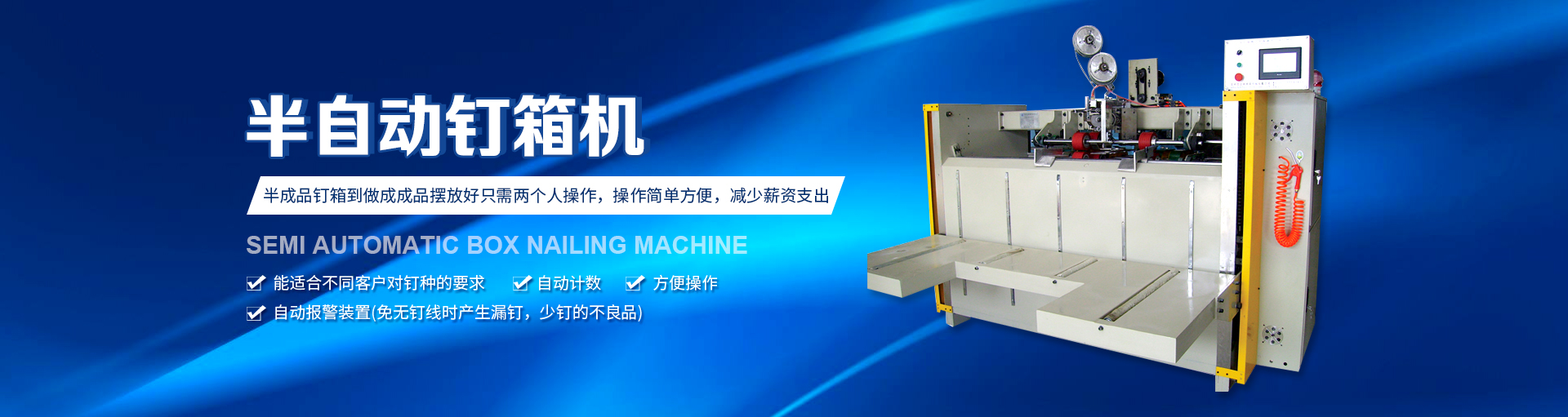 半自動釘箱機(jī)設(shè)備特點釘箱機(jī)在現(xiàn)在的機(jī)械行業(yè)內(nèi)使用比較的廣泛,因為現(xiàn)在紙箱包裝機(jī)械的發(fā)展迅速,企業(yè)關(guān)于釘箱機(jī)的要求也越來越高,而組織制造業(yè)想要使設(shè)備更具競爭力,需要關(guān)于半自動釘箱機(jī)的...查看詳情+